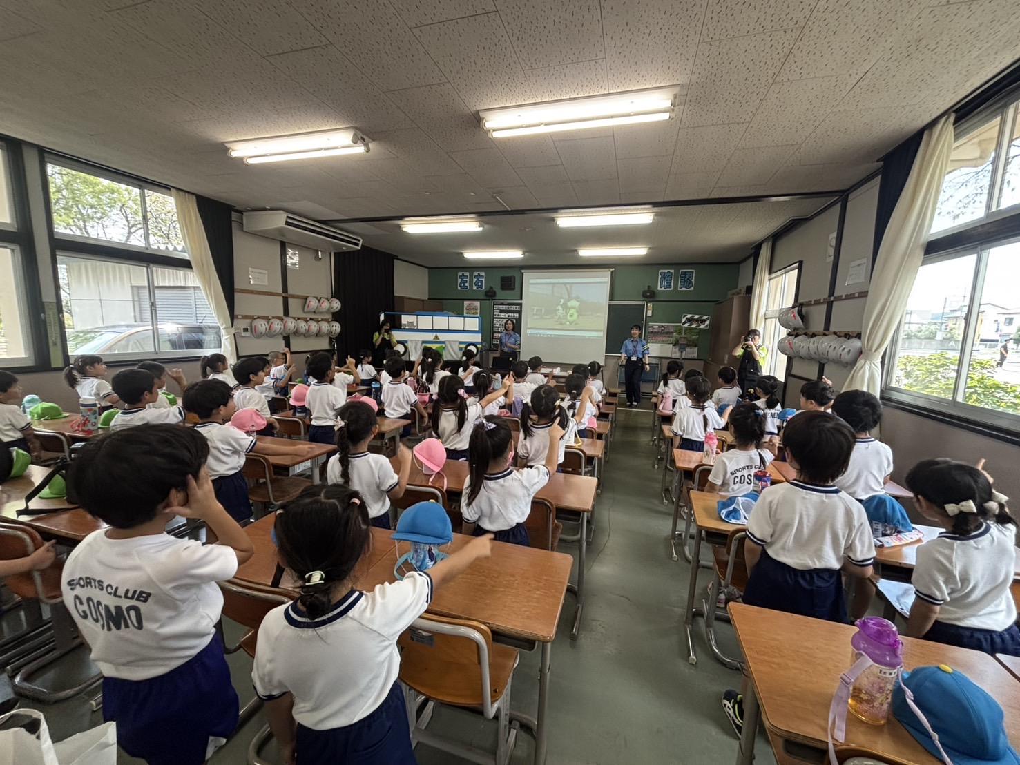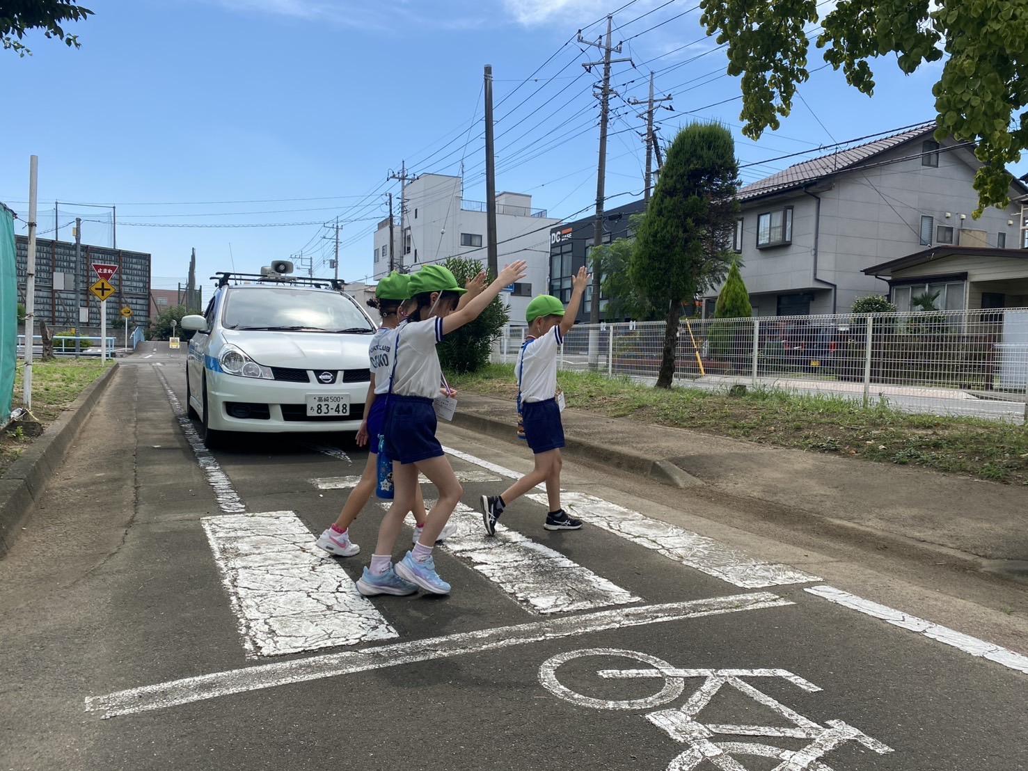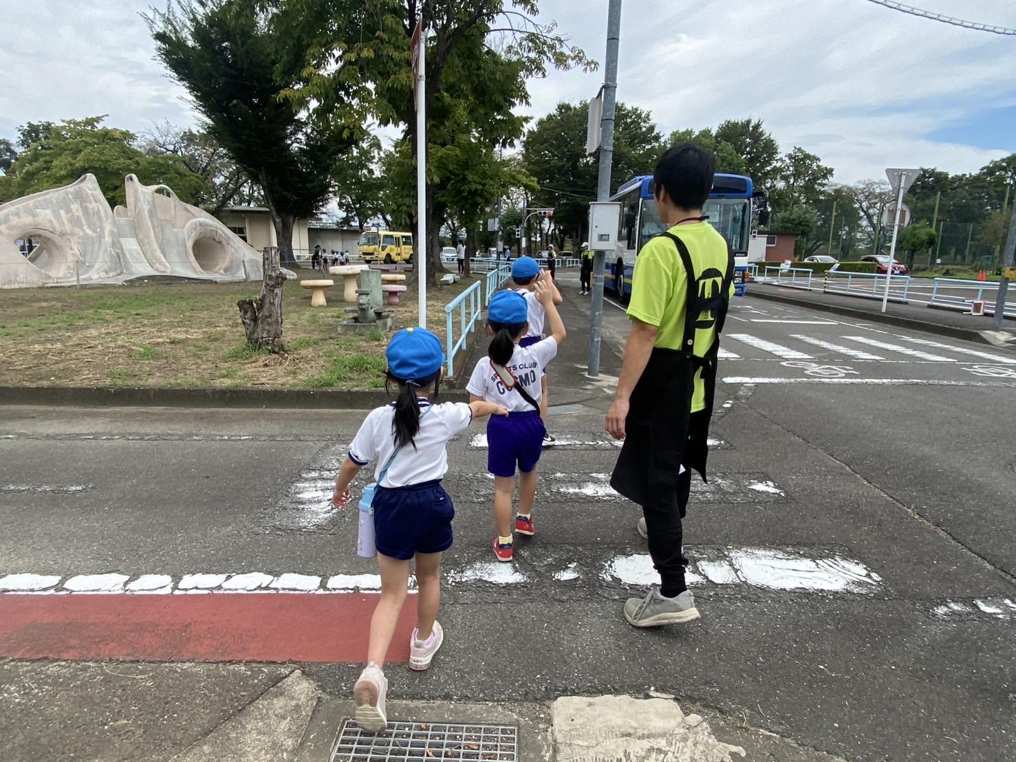 9月8日(月)高崎交通公園にて、年長リスクラブが行われました。交通公園のバスに乗り、目を輝かせながら嬉しそうに高崎交通公園に向かいました。交通公園に着くと、まずは映像を見ながら交通ルールを学びました。信号の歌を歌ったりクイズに答えたり、楽しく交通安全について知ることができました。 以前、幼稚園で行われたリスクラブで学んだ「止まって 待って 飛び出さない」の「と・ま・と」のお約束もよく覚えていて、元気に答えることができました。また、イラストを見ながらたくさんの標識の名前も覚えましたね! 実際に道を歩く練習では、・踏切では遮断機が上がったら左右を確認し、耳に手を当てて電車が来ないか音を聞いてから渡る・横断歩道で待つときは車道から離れて待つ・見通しの悪い交差点では、ゆっくりと横断歩道の近くまで出て、左右をよく確認してから渡るなど、小学校に行く前に、大切な交通安全のルールを学ぶことができました。 交通公園からバスに向かって歩く際やバスから降りて幼稚園に向かう際にも、左右を確認したり、道の端を歩いたりと教えていただいたことを一人ひとりが確認しながら、実践する姿が見られました。小学校に行く準備が整ってきていますね! 今回のリスクラブで学んだことを忘れないように、お家でも交通ルールの確認をし、小学校に通う時の通学路を歩いてみてください。
