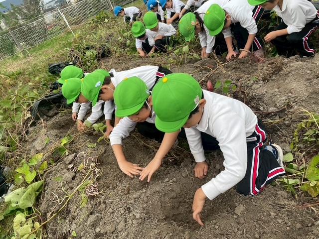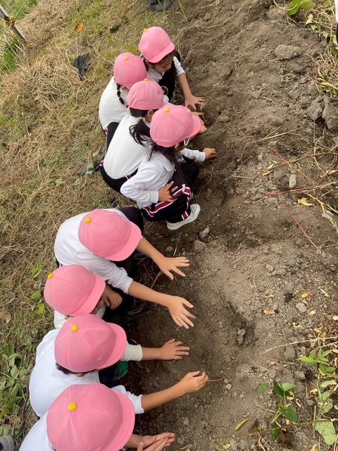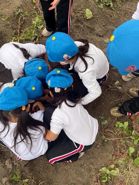 初めは手を使って掘り進める事に少し戸惑う様子もありましたが、芋を見つけると夢中になって掘る事ができました。大きな芋はお友達と協力をして折れてしまわないように慎重に堀り、採れた時の達成感に満ちた嬉しそうな姿がとても素敵でした!
